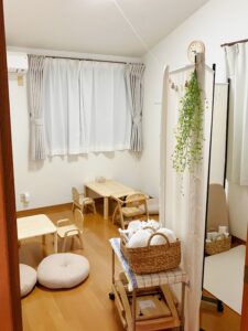 店主の私、 佐藤 里夏は、現役保育士で2児の母。毎週日曜、自宅の1部を、親子で遊んだりくつろいだりできるスペースとして開放しています。